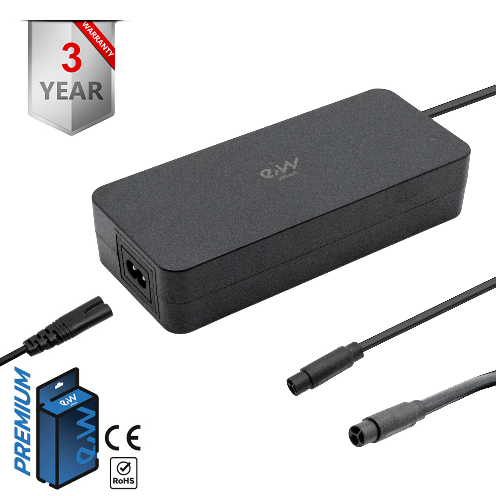Conçu pour les utilisateurs exigeants. Idéal en secours ou pour remplacer un chargeur endommagé. Compatible avec les modèles utilisant une alimentation 63V, notamment Ewheel (référence EWF497). Léger et facile à transporter : seulement 0,587 kg.