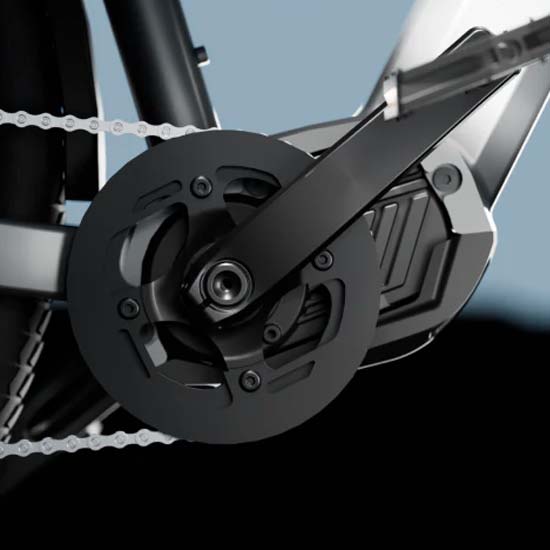 - Pédalier : Intégré au moteur Bafang M410 à entraînement central