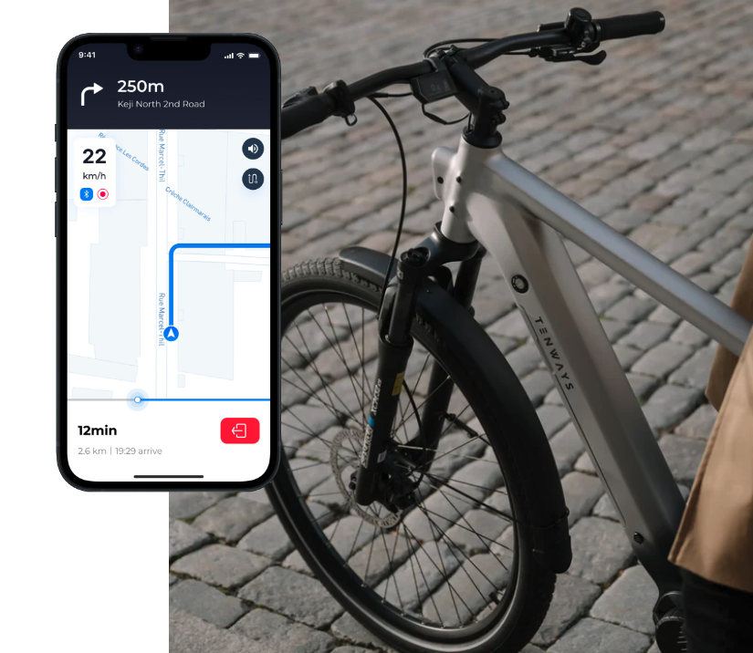 Connectez-vous à l'application Tenways AGO X via Bluetooth et projetez directement sur l'écran LCD intégré pour une navigation fluide.